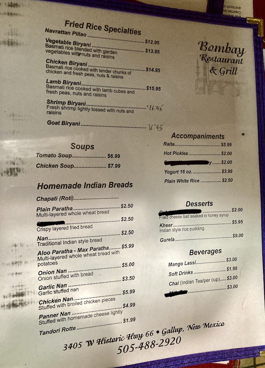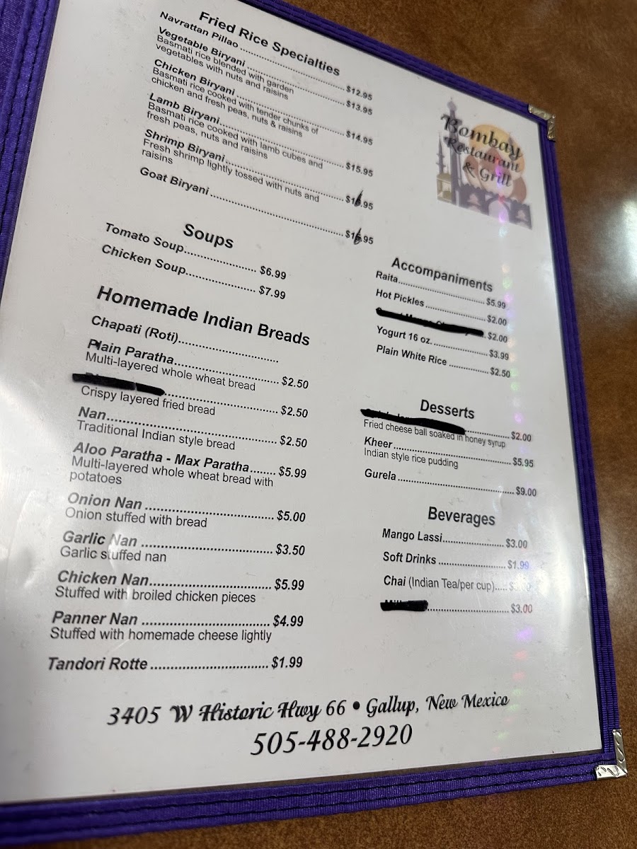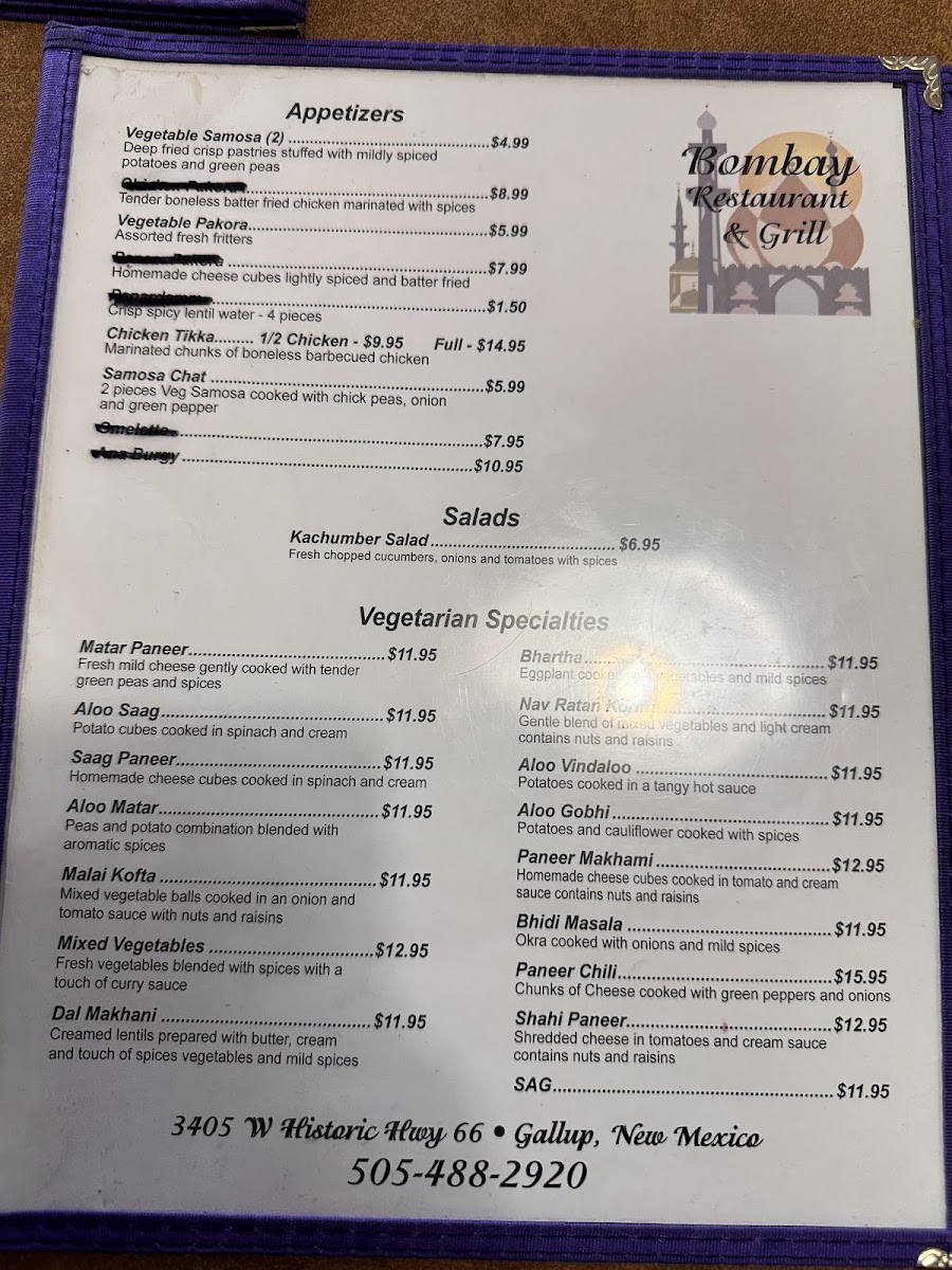 Welcome to Bombay Restaurant and Buffet, a hidden gem located in Gallup, New Mexico. Despite its unassuming surroundings at a truck stop, this restaurant offers a remarkable culinary experience that belies its exterior. The menu celebrates authentic Indian flavors, with standout vegetarian specialties like Matar Paneer and Malai Kofta, each delicately spiced and promising a delightful taste journey.
